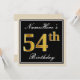 Elegant, Black, Faux Gold 54th Birthday + Name Invitation