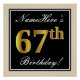 Elegant, Black, Faux Gold 67th Birthday + Name Poster