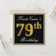 Elegant, Black, Faux Gold 79th Birthday + Name Invitation