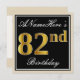 Elegant, Black, Faux Gold 82nd Birthday + Name Invitation