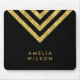 Elegant black mousepad featuring faux gold chevron pattern that you can personalise with your name.