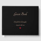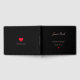 Create your own custom, personalised, simple, beautiful elegant faux rose gold typography / script / font / calligraphy on black, red hearts, wedding / anniversary guestbook, featuring laminated front and back hard covers with a glossy finish, and 70 lb cream coloured 61 sheets / 122 pages writing pages with columns that read “Names” and “Message”. The back features the couple's names with their initials in faux rose gold on a red heart. Simply type in bride and groom's or wife and husband's names, the wedding / anniversary date, and the couple's initials. to customise. A beautiful, elegant, special keepsake, to let your guests pen their thoughts and keep memories fresh like it was yesterday. Elevate your special occasion, capture memories with style and grace with this custom guestbook, personalised for you.