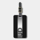 Elegant customisable black luggage tag with FAUX metal silver stripe and your bold monogram.