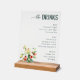 Elegant Black Floral Beverage Menu Acrylic Sign
