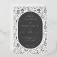 This elegant wedding invitation features a classic rectangular layout with a symmetrical design, framed by intricate black botanical illustrations on a white background. The central oval in dark gray highlights the event details in a sophisticated serif font, creating a formal and refined mood. The monochromatic color palette enhances the timeless appeal, making it perfect for a traditional or garden-themed celebration. Customizable text fields allow personalization while maintaining an overall sense of elegance and sophistication. Ideal for couples seeking a blend of nature-inspired elements and understated luxury.