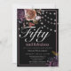 Elegant Black Floral Fifty and Fabulous Birthday Invitation