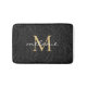 Elegant Black Floral Gold Script Monogram Bath Mat