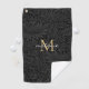 Elegant Black Floral Gold Script Monogram Golf Towel
