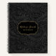 Elegant vintage black floral botanical pattern sketchbook with a custom name in gold stylish script typography and "sketchbook" in gold modern san serif font.