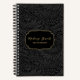 Elegant vintage black floral botanical pattern sketchbook with a custom name in gold stylish script typography and "sketchbook" in gold modern san serif font.