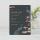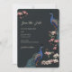 This Elegant Black Floral Peacock Wedding Save the Date features hand-drawn blue and teal peacocks perched on Magnolia branches in full bloom in black ink on an elegant almost black background. The back features a beautiful pattern with the same art elements. Personalise with your event details by clicking on "Personalise this template" on the product page. All text is editable.