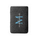 Elegant Black Vintage Floral Botanical Pattern with a sky blue monogram and white script name.