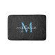 Elegant Black Floral Sky Blue Script Monogram Bath Mat