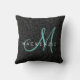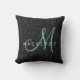 Elegant Modern Black Floral Botanical Teal Script Monogram Throw Pillow. An elegant teal script monogram combined with a clean white san-serif font makes for a contemporary look.