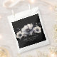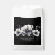 Cute and simple black and white flower wedding design. A classic but whimsical look with black, grey and cream coloured flowers with white fonts and modern lettering. Edit all of the text to your own information. Great for a boho wedding with a modern twist, a winter or spring classic affair, or even a bit of a gothic vibe. Elegant Modern Boho Floral Black Wedding Favour Bag
