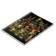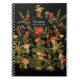 Notebook Journal in Elegant black florals fall botanicasl with greenery and mushrooms all arranged as a collage on a black background. Inspired by a woodland forest. Personalise your name.