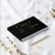 An elegant Black foil guestbook with the text "Cheers to 70 Years" on the cover. Customize the age, name and date on the front cover and also the text on the spine. This lovely guestbook will be a nice touch to display on an elegant birthday party entrance table!