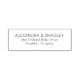 This elegant rubber stamp features a classic serif font, arranged in a clean and balanced vertical layout. The design utilises a sophisticated black and white colour palette, creating a timeless and formal appearance perfect for personalising invitations or important documents. With customisable text fields, it allows you to add your own names and addresses with ease, making it ideal for weddings, events, or professional correspondence. The minimalist style emphasizes clarity and tradition, ensuring your stamped messages convey elegance and sophistication effortlessly.