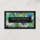 Elegant black framed peacock feathers blue green business card