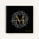 Elegant Black Girly Floral Gold Monogram Name Notebook