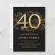 Elegant black gold 40th birthday party invitation. Customisable modern feminine design featuring roses botanical accents and faux glitter gold. Simple floral invite card perfect for a stylish female bday celebration. Personalise with your own details. Printed Zazzle invitations or instant download digital printable template.