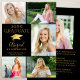 Announce your high school or college graduate's achievement with this elegant black and gold (or other background colour) photo announcement featuring 6 photos (5 on the front and 1 on the back), an elegant faux metallic gold foil graduation cap or mortarboard, the title YEAR GRADUATE with your graduate's name in a trendy handwritten script and school name. The back is designed to include information about your graduates achievements, activities and future plans as desired. ASSISTANCE: For help with design modification/personalisation, colour change, transferring the design to another product or if you would like coordinating items, contact the designer BEFORE ORDERING via Zazzle Chat or makeitaboutyoustore@gmail.com.
