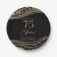 Elegant Black Gold Agate 75th Anniversary Party Paper Plate