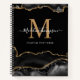 Elegant Black Gold Agate Geode Script Monogram Notebook