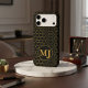 The centerpiece is a bold, circular gold frame containing a customizable classic serif monogram, making it a perfect personalized gift for him or her. Whether you're heading to a business meeting or a night out, this sleek, architectural pattern adds a touch of high-end glamour to your device.
