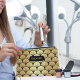 Elegant Black Gold Art Deco Pattern Personalised Accessory Pouch