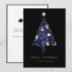 Elegant Black Gold Blue Script Christmas Tree Holiday Card