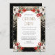 This elegant black and gold Christmas party invitation featuring gold glitter, white poinsettia, holly with red berries and greenery is perfect for Christmas parties, holiday soirees, corporate events, holiday cocktail parties and more. Easily personalize this invitation with your party details.