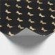 This wrapping paper features elegant faux gold foil butterfly pattern on black background.