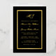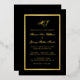 This elegant wedding invitation features real gold foil calligraphy script and a gold foil frame on a simple black background. Designed by Susan Coffey.