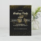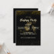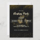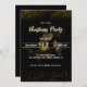 Christmas Party Invitation Gold and Black Cute christmas party invitations featuring a simple white background, watercolor spruce trees, santa claus, a collection of gifts, and a modern party template that is easy to personalise.