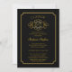An elegant banner scroll and scalloped frame gold tone and black graduation party invitation design that can be personalised for high school, college, university or vocational school graduations. Design by Holiday Hearts Designs (all rights reserved).