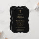 Elegant black and gold baptism invitations featuring a gold cross and an elegant script font.