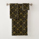 Elegant Black Gold Dotted Flower Tile Pattern Bath Towel Set