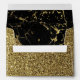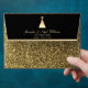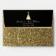 Simple, elegant, luxury chic black and gold glitter 5x7 envelope for winter holiday greeting cards and invitations with return address and Christmas tree at the top flap.