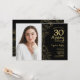 Elegant Black Gold Floral Photo 30th Birthday Invitation