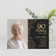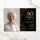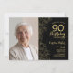 Elegant Black Gold Floral Photo 90th Birthday Invitation