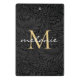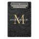 Elegant Black Gold Floral Script Monogram Mini Clipboard