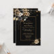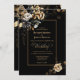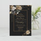 Make your special day even more memorable with this elegant black and gold floral wedding invitation! This invitation features an arrangement of black, gold, and cream roses and soft gold bokeh in the background behind the blooms adding a touch of whimsy and creating the perfect backdrop for your wedding details. Enclosed within a simple gold border, the customisable text allows you to add your own information to the invitation. The timeless combination of dark black and luxurious gold makes this invitation a perfect choice for any type of formal wedding, while the intricate floral design adds a touch of femininity and elegance.