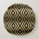 Elegant Black & Gold Geometric Pattern Round Cushion