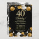 Elegant Black Gold Glitter 40th Birthday Photo Invitation