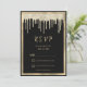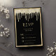 This luxury modern minimalist black and gold glitter drips border Wedding RSVP Invitation is inspired by the simple and elegant was but with subtle hints of modern influence. It features a glam gold glitter drips border on a simple black background. This classic and luxury design will be a big hit with all your guests. All designs are printed.