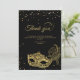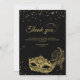 Elegant Black Gold Glitter Masquerade Thank You Card