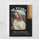 Elegant Black Gold Glitter Photo 30th Birthday Invitation. Modern design with faux gold glitter on a black background with custom name and a photo in an arch frame on the front. Customise the invitation on the front and on the backside.