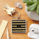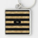 Elegant Black Gold Glitter Striped Monogram Key Ring