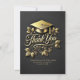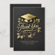 Elegant Black Gold Grad Cap Leaf Graduation Thank You Card